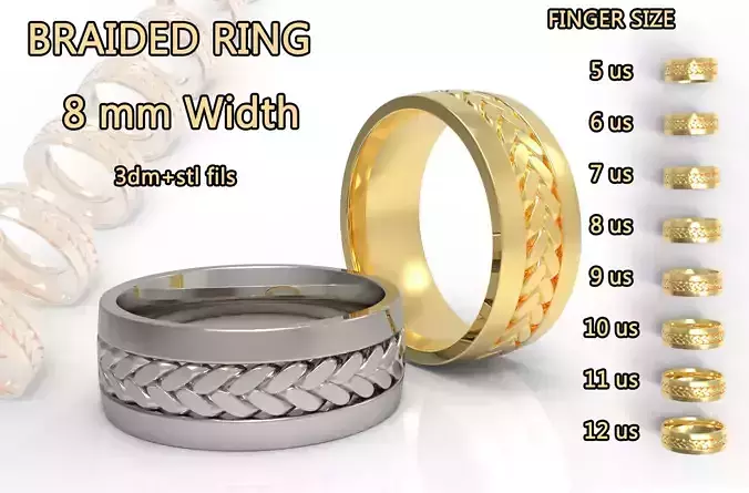 -*We are happy to present to you this 3d model ring package WIDE BRAIDED WEDDING BAND RING Width 8mm *