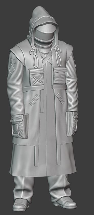 Please not that i didn't include the coat's fasteners, because in bigger scale they'd look strange and in smaller they'd be unprintable. I advise you to use something ranging from a thread to a very thin rope (depending on a scale) to simulate it.
