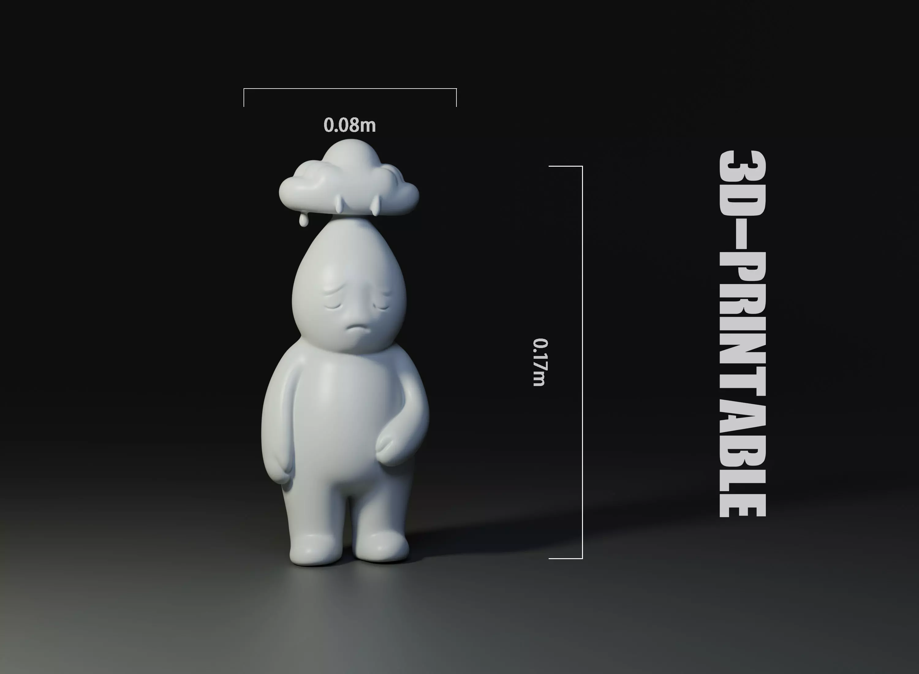 On its head is a small cloud halo that sometimes rains, but it is not sad… more like it is pouring out hidden emotions.