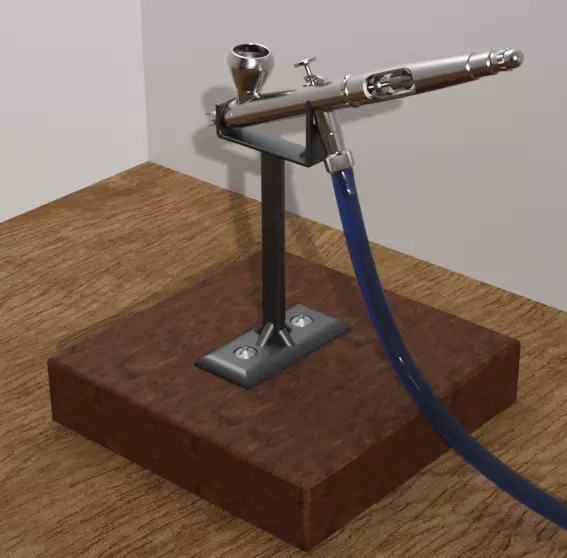 The model was originally designed in Autodesk Fusion 360 for 3D printing as a stand for an airbrush. It includes only an airbrush stand without any other models such as an airbrush, etc.