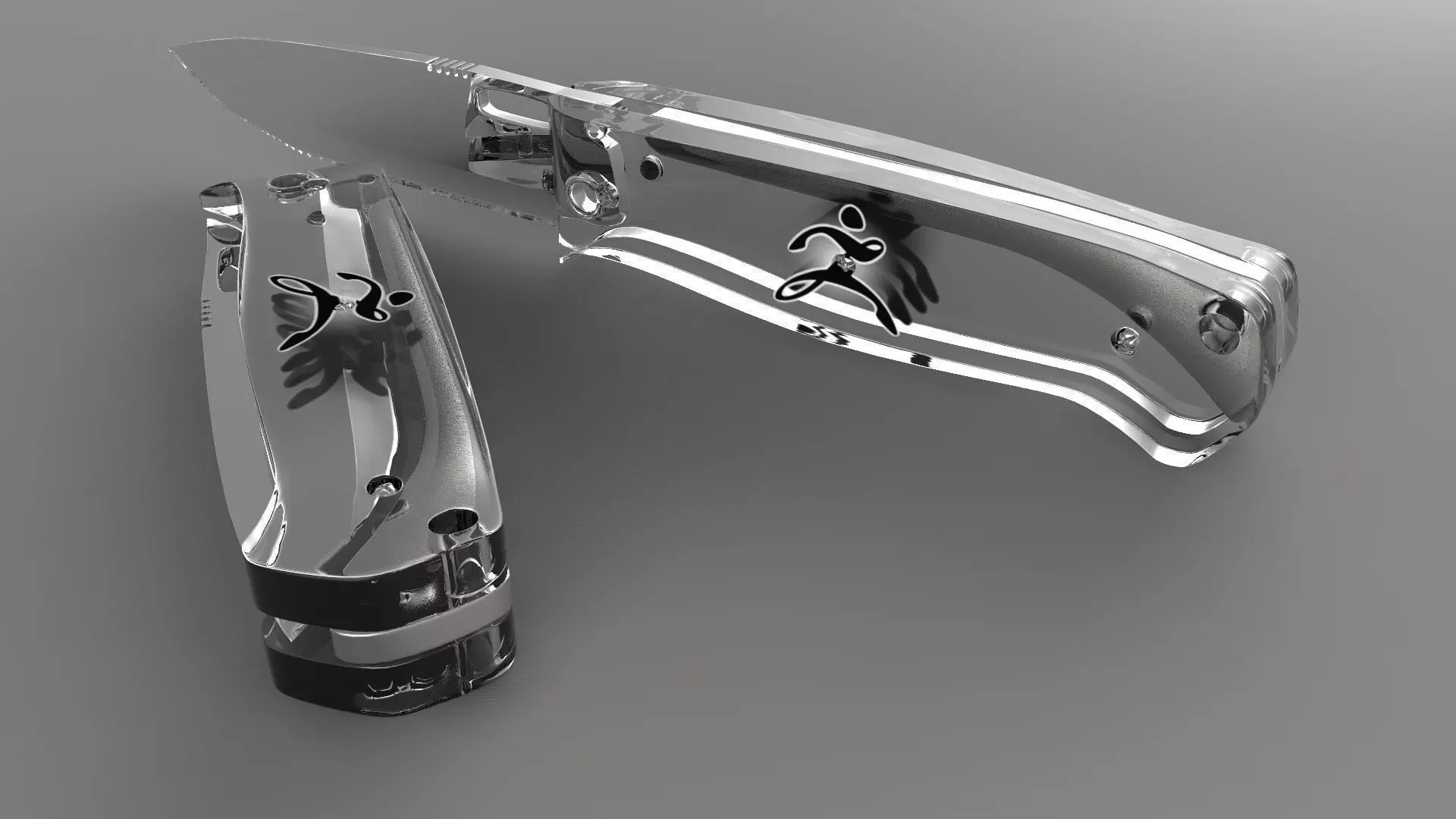 This 3d printable knife comes in multiple parts (x2 back pieces which are different from each other, a center piece, blade and screw cosmetic pieces.) Each individual mesh is water tight. Tension locking mechanism is not included in the model.