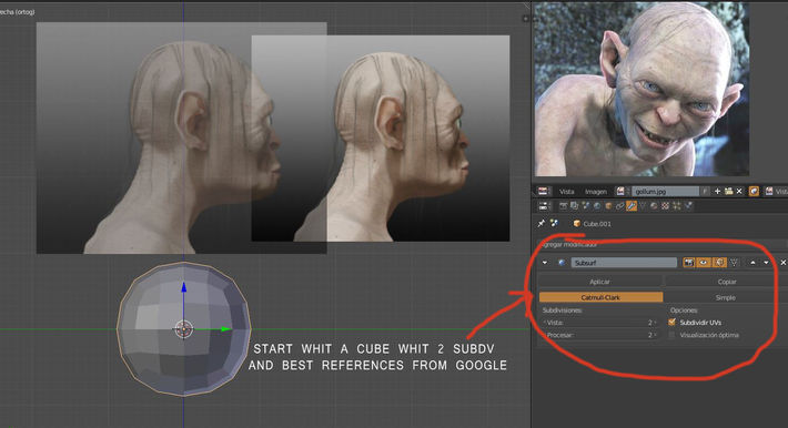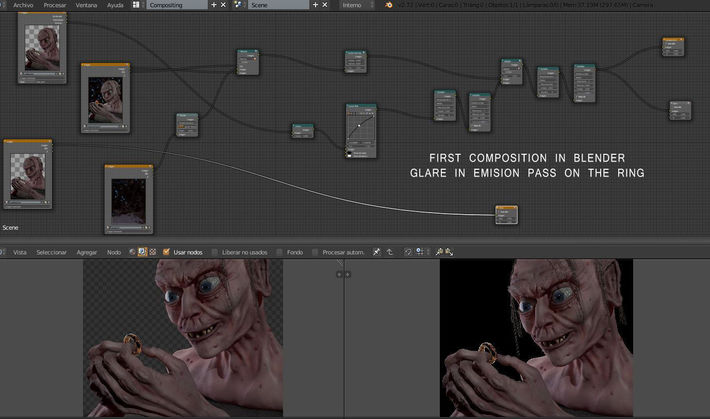 Model Gollum in Blender , Sculpt and paint in blender, retopology Zbrush, Render Cycles